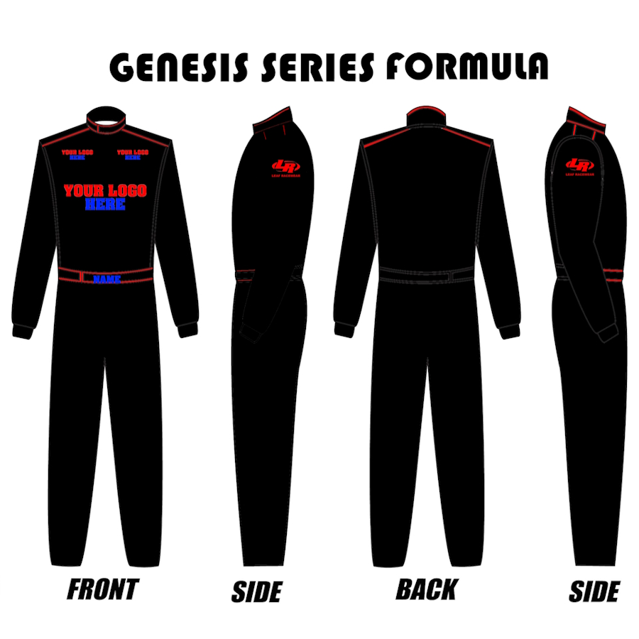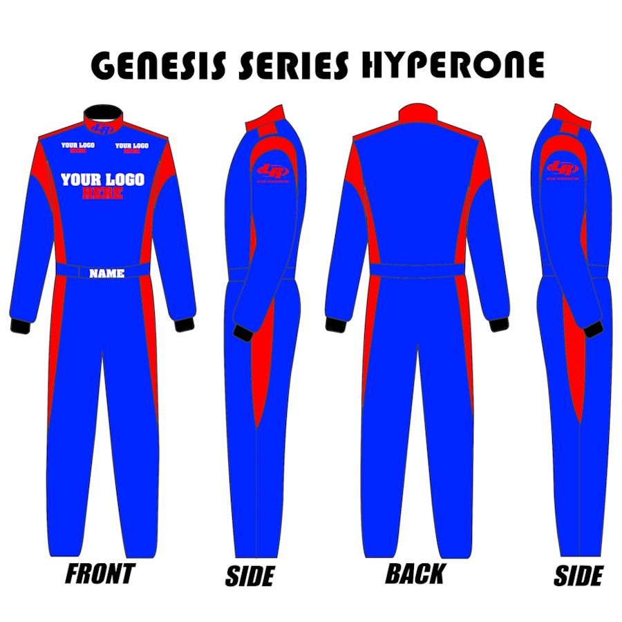 The GENESIS SERIES is the perfect choice for racers who want a pro-level look and tailored fit — without the cost of a fully custom design. Built for value and performance, this double-layer suit is made with a durable Shiny Nomex-style Meta-Para Aramid outer shell and a soft aramid knit liner for lasting comfort and flame resistance.