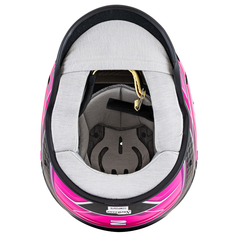 Constructed with an ultra-lightweight large weave carbon mix shell, this helmet offers high-end durability with reduced weight. The plush 28 Series color-matched interior is removable, washable, and fire-retardant. Dual chin curtains and a dirt-sealed Z-20 anti-fog shield enhance dust protection and visibility on dirt tracks. Hydration and audio systems are pre-configured for seamless integration.